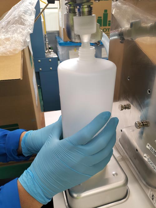 お客様御支給の精製オイルを、1000mlと500mlの2種類のボトルへ充填しました。